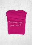 Passionné d’histoire, d’archives et par l’underground urbain, l’artiste estonien Jaanus Samma multiplie les supports. Sélectionné pour représenter son pays à la 56ème Biennale de Venise, il a exposé photos, vidéos et documents inspiré par un directeur de kolkhoz soviétique déchu de son statut parce qu’il avait des pratiques homosexuelles. Formé à la gravure traditionnelle, il reprend dans sa série “Sweaters” des graffitis à connotations sexuelles qu’il a pu apercevoir à travers ses voyages en Europe pour les inscrire sur des pulls tricotés à la main. “J’ai voulu appliquer ces textes et images souvent offensants sur un support chaud et intime. Et finalement, lorsque le pull est porté, une chose qui était dessinée de façon anonyme devient soudain très individuelle.”
