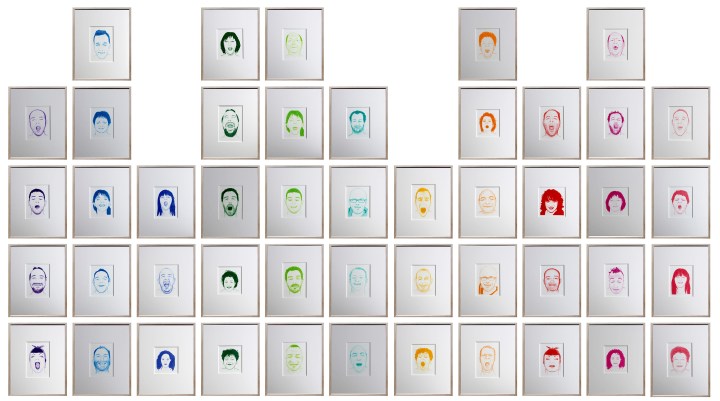 Art is often a struggle, sometimes with oneself. Laurie Dasnois found herself 47 days in a coma after a serious traffic accident and woke up right hemiplegic. The two series of the 47 drawings that she carries became a performance, a struggle and a reappropriation of her tool, her right hand. The first, Coma, represents variations of palm trees sometimes made of words: Frustration, Fear, Panic, Stress. This series denounces the boredom of the individual in society and his “anxiety of missing out on life. Then he dreams it and imagines it under his palm tree to escape everyday life.” The second series, The Carnival of the Living Deads, shows the faces of the artist relatives who visited her during those 47 days. Each bears the expressions she could have in her sleep.